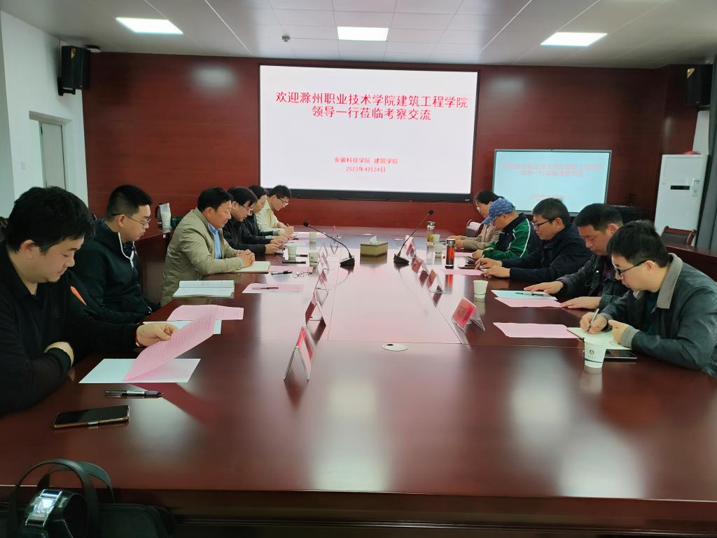 然后,张国富首先介绍了滁州职业技术学院近年来的发展,建筑工程学院具体建设情况,就实验室建设、专业建设、学科竞赛和专升本教学管理工作以及未来发展目标定位等方面进行了深入交流。