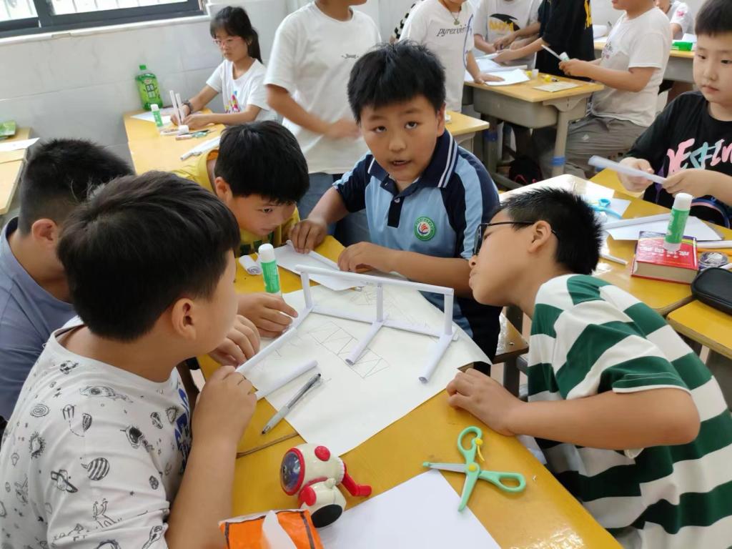 在制作过程中,当孩子们遇到难题时,他们会请团队成员进行操作演示,团队成员和孩子们相互学习,共同成长,这不仅培养了孩子们合作意识,还在实践中培养了创新能力。通过亲手搭建建筑结构模型,孩子们感受到其中蕴含的艺术魅力,在他们年幼的心灵中埋下了梦想的种子。