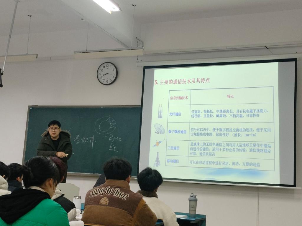 在课堂教学过程中,李凯伟博士利用超星学习通网络平台进行了授课前的位置签到后,开启了“农业信息传输技术”教学内容的授课。在授课过程中,李凯伟老师结合自身研究领域回顾了农业物联网领域用到的各类传感器,引入授课内容。围绕通信技术、农业信息传输技术原理和分类等知识点,对《农物业物联网技术》课程的“农业信息传输技术”章节展开讲授。授课内容组织逻辑清晰,表达流畅,与学生互动交流热烈,营造了生动活泼的课堂氛围,受到了听课师生的好评。