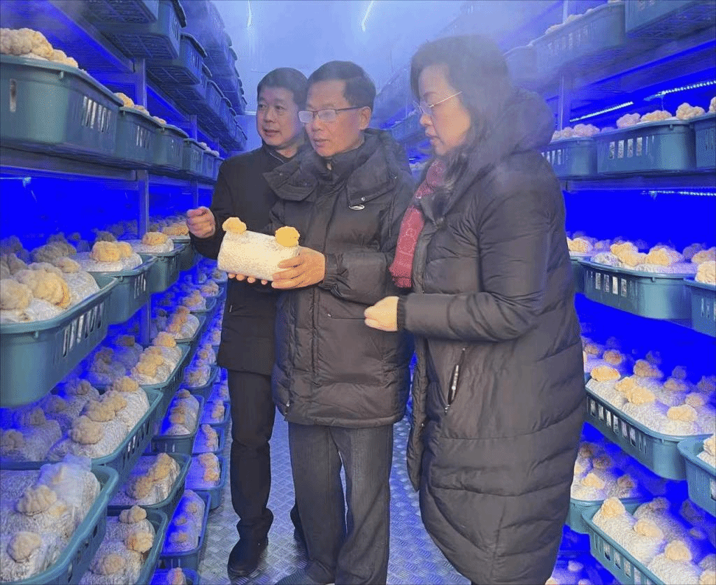 1月16日,农学院何华奇教授与生命与健康科学学院孙玉军教授、必一体育平台_必一体育平台(中国)股份有限公司创业大学生——安徽来一克实验科技有限公司总经理郭凯等到长丰县中国菌物谷考察食用菌智慧方舱项目。安徽省食用菌行业协会会长、玉隆农业高科技股份有限公司总经理常莹等陪同参观。