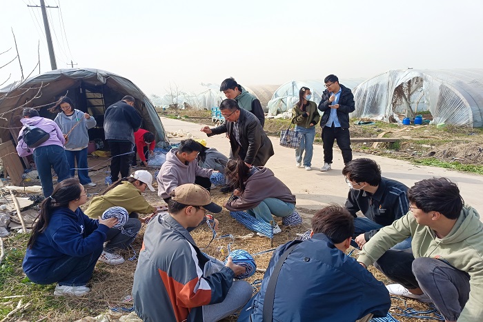 耕读教育是我国五千年农业文明发展形成的特色文化。为让同学们了解农耕知识,体会耕读文化之精华,提高学生的动手实践和团队合作能力,3月15日下午,农学院党委书记何世潮,教务处副处长、创新创业学院副院长高青海带领园艺与设施农业科学与工程专业各年级50余名同学,前往安徽方邱湖农场方苑现代农业种植园开展耕读教育实践活动。
