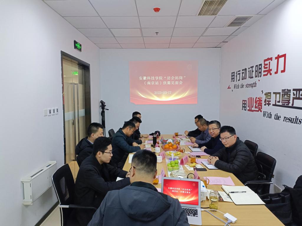 熊传兵首先对供需见面会的成功召开表示祝贺,对何世潮一行的到来表示热烈欢迎。何世潮对此表示感谢,介绍了本次“访企拓岗”供需见面会召开的目的,同时介绍了必一体育平台_必一体育平台(中国)股份有限公司办学历史沿革、毕业生“四能人才”特色亮点、2023届全校毕业生的分布等简况。随后南京瑞美福农业科技发展有限公司副总经理熊传兵、南京诺唯赞生物科技股份有限公司人事经理陈雨、南京特斯特检测技术有限公司总经理兼董事长王海、安徽留香阁食品有限公司总经理潘振杰、南京野蔷薇农业科技发展有限公司总经理高升、江苏汉伟斯特生态农业有限公司财务总监崔阳等六家用人单位代表依次介绍了本企业发展现状及人才需求等情况。