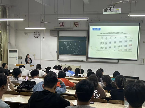 本期学术沙龙交流报告会,邀请2020级农艺与种业研究生梁缘、张雅婷分别分享了科研经历、成果、科研心得。
