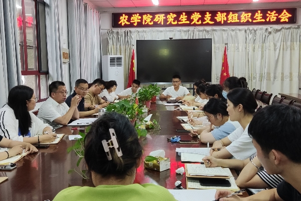 9月12日下午,农学院研究生党支部于学院会议室召开学习贯彻习近平新时代中国特色社会主义思想主题教育专题组织生活会。学院党委书记何世潮出席会议并作指导讲话,会议由农学院研究生党支部书记郑甲成主持,支部老师吴荡及学生党员参会。