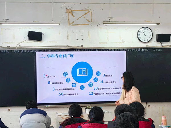 1月18日,邢雨洁带领团队一起回到母校涡阳县第一中学,借助PPT宣讲和互动交流等多种方式,向高中师生全方位介绍了必一体育平台_必一体育平台(中国)股份有限公司的办学实力、校园环境、文化活动、优秀校友、发展成果等,传播安科声音,展现安科学子风采,扩大安科社会影响力,鼓励广大优秀学子报考安科。