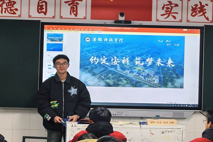 1月16日,农学院凌天羽带领实践团队成员杜婉晴和徐志鹏回到了自己的高中母校芜湖市繁昌区第一中学,开展了一场别开生面的“我回母校报喜讯”活动,受到了母校师生的热烈欢迎。
