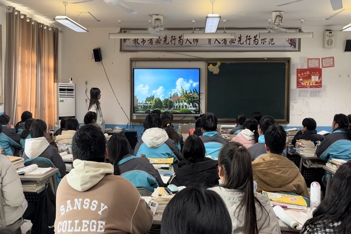 活动当天,两位实践成员与高中母校老师进行了亲切交流,不仅向母校老师汇报了她们在大学期间的学习生活情况和个人成长进步,还通过播放学校宣传片、PPT讲解等形式,生动地介绍了安科的发展历程、学科建设、校园文化和升学就业等方面的情况,赢得了学弟学妹们的热烈反响。她们还向学弟学妹们分享了学习经验,鼓励他们努力学习,做好规划。