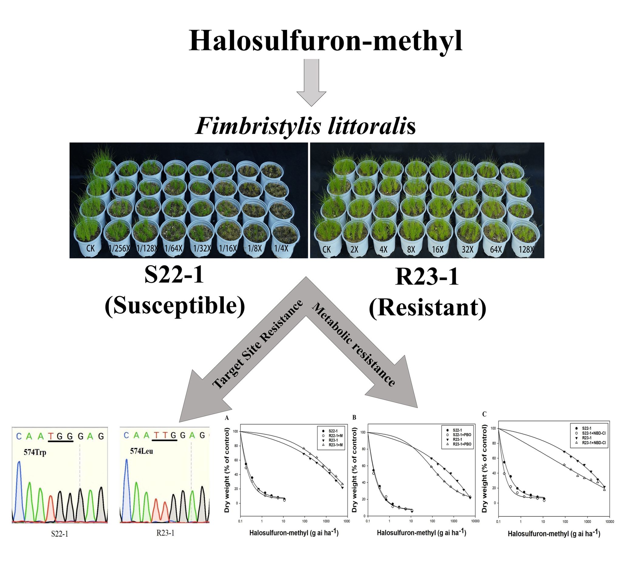 近日,我校农学院毕亚玲教授团队在国际知名期刊《Pesticide Biochemistry and Physiology》(中国科学院一区Top期刊,IF=4.2)发表了题为“The Trp-574-Leu mutations together with enhanced metabolism contribute to cross-resistance to ALS inhibiting herbicides inFimbristylis littoralis”的研究论文。该研究首次揭示了稻田恶性杂草水虱草(Fimbristylis littoralis Gaudich.)对乙酰乳酸合成酶(ALS)抑制剂类除草剂的抗性机制。硕士研究生史悦悦和青年教师吴志文博士为共同第一作者,毕亚玲教授为通讯作者,必一体育平台_必一体育平台(中国)股份有限公司为唯一完成单位。