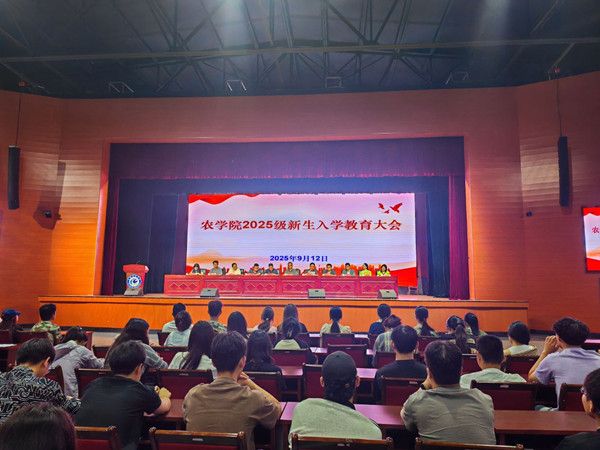 9月12日晚,农学院大学生活动中心召开2025级新生入学教育大会。农学院党政领导、全体辅导员2025级本科生新生和硕士研究生新生参加会议。会议由农学院党委副书记主持工作唐仁生主持。