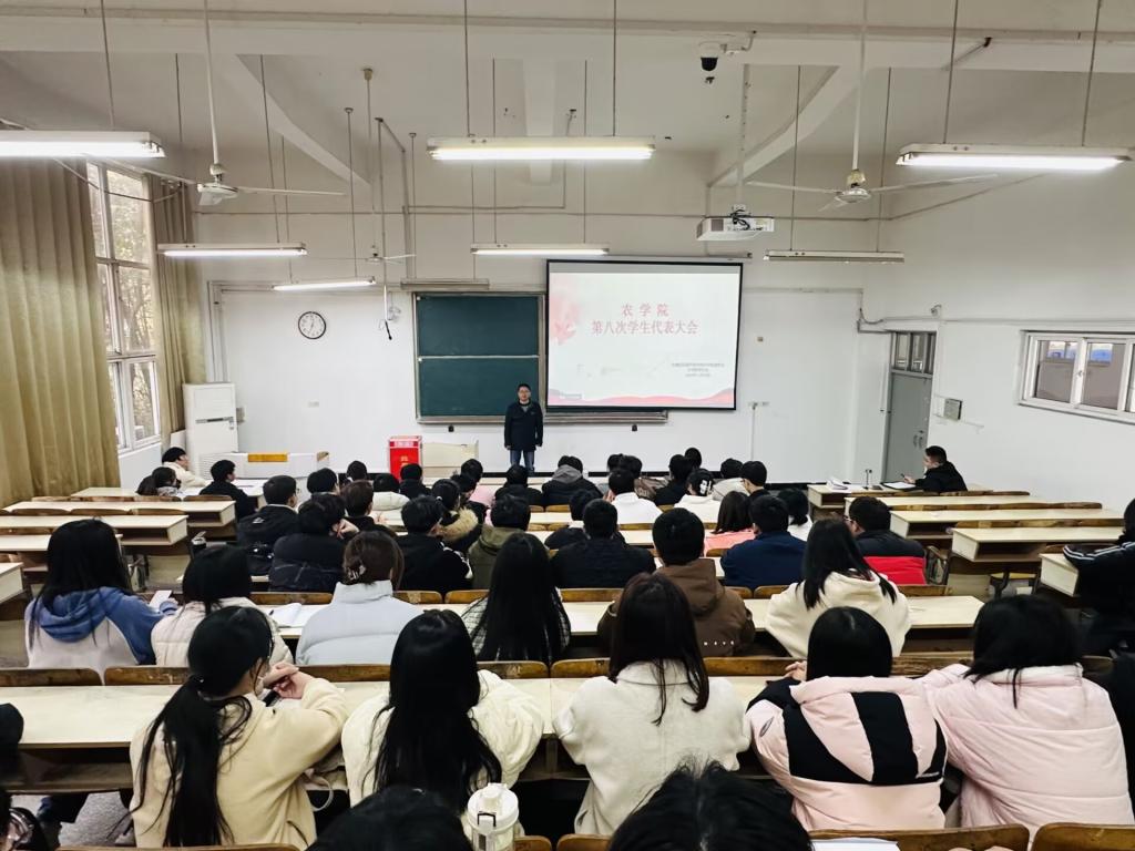 11月29日中午,农学院在求知楼A107教室召开农学院第八次学生代表大会。农学院党委副书记张轶辉、团委书记杨孝延、副科级辅导员李娜出席,农学院全体学生代表参加会议。