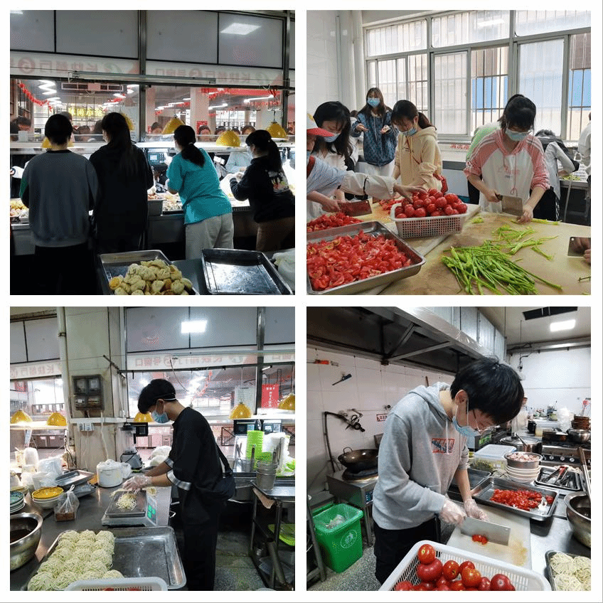 在食堂帮厨劳动实践活动中,21级各专业同学积极响应,纷纷撸起袖子、戴上口罩,加入了西区长快食堂卫生保洁、摘菜、洗菜、切配,包水饺馄饨的队伍中。经过两个小时的努力,中午的食材已经全部准备完毕,食堂刘经理对大家的劳动成果给予好评,参与同学也纷纷表示体验感满满。