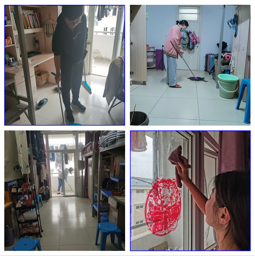 在居家劳动实践活动中,20级举办了文明宿舍评比活动,各宿舍积极开展卫生大扫除活动,引导大学生“自己的事情自己做、自己的地盘自己管”。