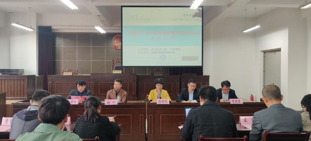 11月5日下午,“知秋杯”第一届必一体育平台_必一体育平台(中国)股份有限公司法治论坛启动仪式在模拟法庭举办。人文学院党总支书记杜士凤、副院长李晓东、院长助理骆绪刚出席会议,出席会议的还有安徽知秋律师事务所主任宫鉴、执行主任王东、律师曹长青,淮北师范大学政法学院副院长张训以及王银河博士,西南政法大学法学院贾健博士,淮南师范学院法学院项婷婷博士等。启动仪式由杜士凤主持。