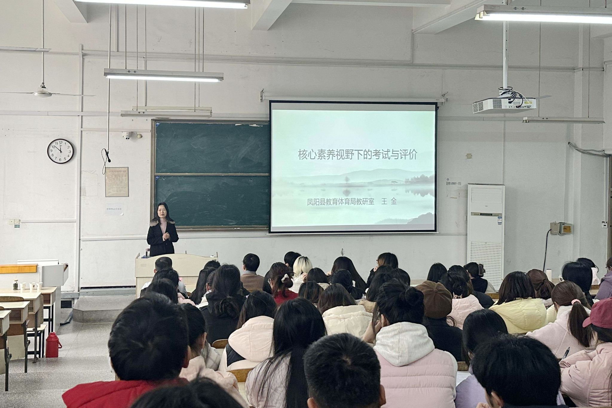 12月4日下午,求知楼A204教室,凤阳县教育体育局教研室主任王金应邀来校作语文教学专题报告。中文系教师及汉语言文学专业2022级全体学生参加报告会,报告会由人文学院副院长牛永辉主持。