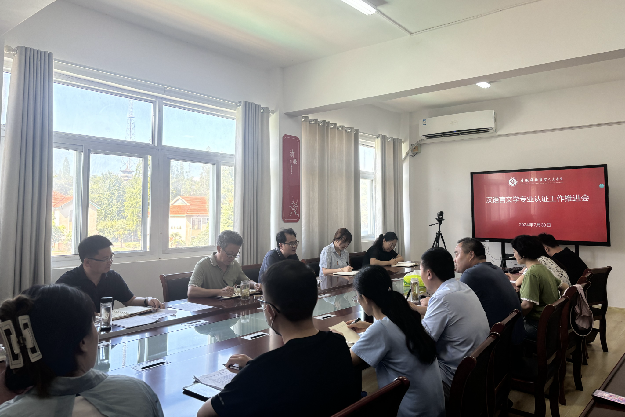 7月30日下午,人文学院在学院会议室召开汉语言文学专业认证工作推进会。学院党政领导及汉语言文学专业认证工作组全体成员参加会议。会议由人文学院副院长牛永辉主持。
