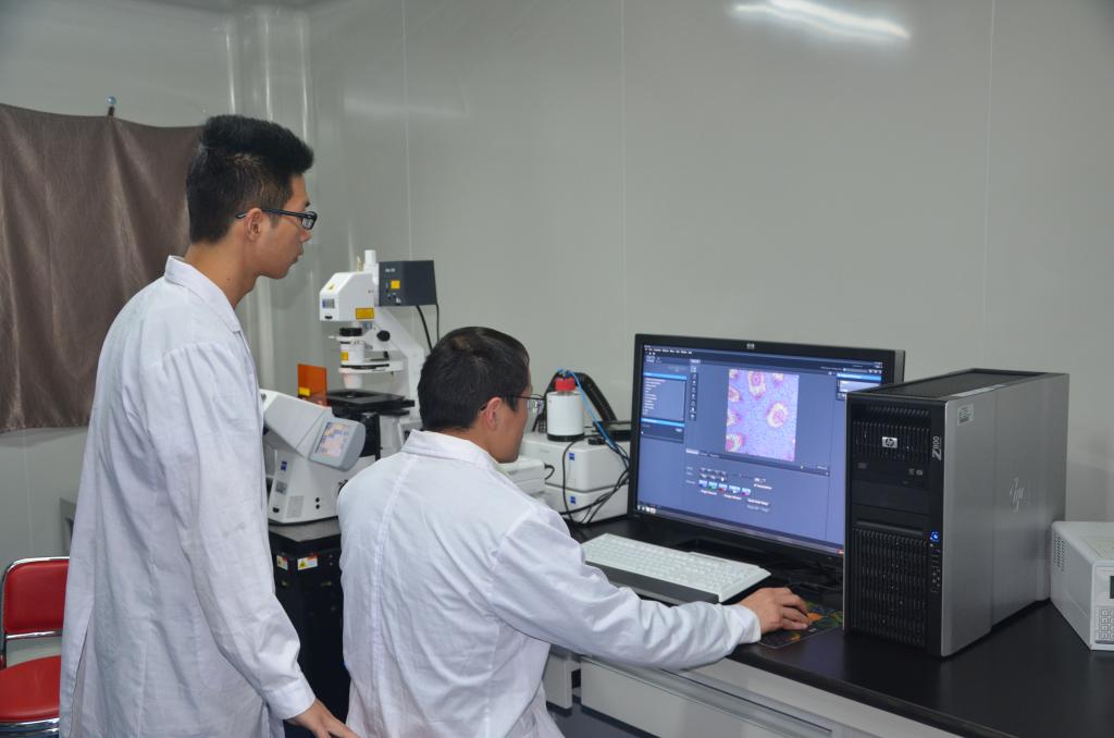 本研究院现有实验室面积约2400平方米,目前登记在账仪器设备固定资产总值约3000万元,包括9台100万以上的大型仪器设备,20台20万以上的大型仪器设备。如透射式电子显微镜、扫描电子显微镜、原子吸收仪、气相色谱-质谱联用仪、液相色谱-质谱联用仪、X射线衍射仪、同步热分析仪、红外光谱仪、荧光光谱仪、电化学发光工作站、激光扫描共聚焦显微镜、正置荧光显微镜、倒置荧光显微镜+显微操作系统、实时荧光定量PCR系统、超速离心机、冰冻切片机、全自动包埋机、快速蛋白质纯化系统、荧光化学发光凝胶成像系统、全波长酶标仪等。