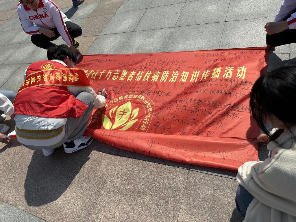 参与活动的志愿者同学表示,参加旗帜传递活动不仅加强了志愿者团体间的交流和互动,也提升了荣誉感和归属感,希望为2035年终结结核病的战略目标奉献更多智慧和力量。(特约通讯员:王传林 摄影:李庆冬 审核:彭丽萍)