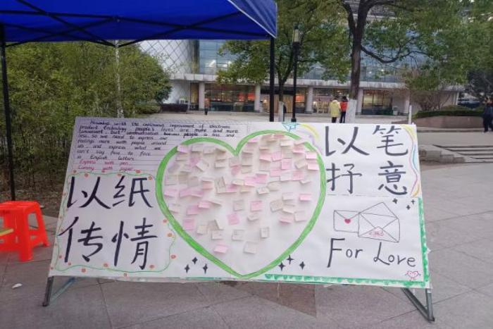 为让同学们能够更好地抒发自己内心的想法,学院心理委员联合会12月7日在西区小广场进行了“以笔抒意,以纸传情”活动。活动中,同学们用汉英双语写下了自己对朋友、家人、老师最想说的话,以及自己最真挚的愿望。