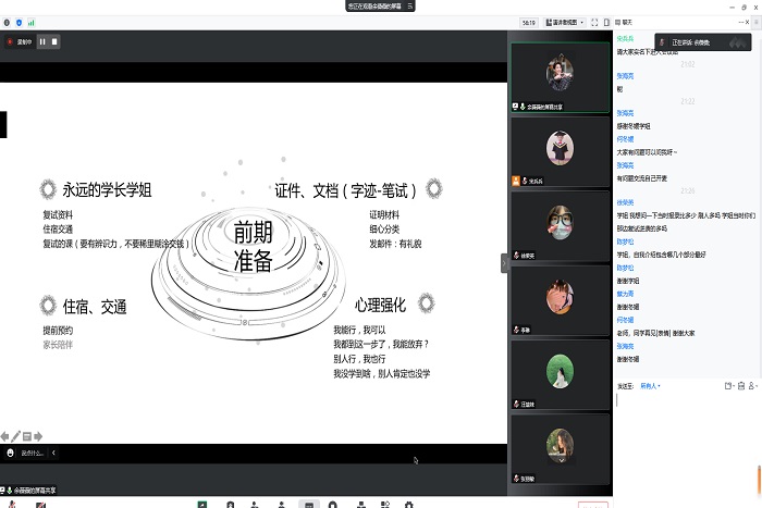 本次交流为即将参加考研复试的同学提供了许多有用的帮助和建议,增强了学生成功复试的信心。(特约通讯员:陈慧中;摄影:宋兵兵;审核:蔡为青)