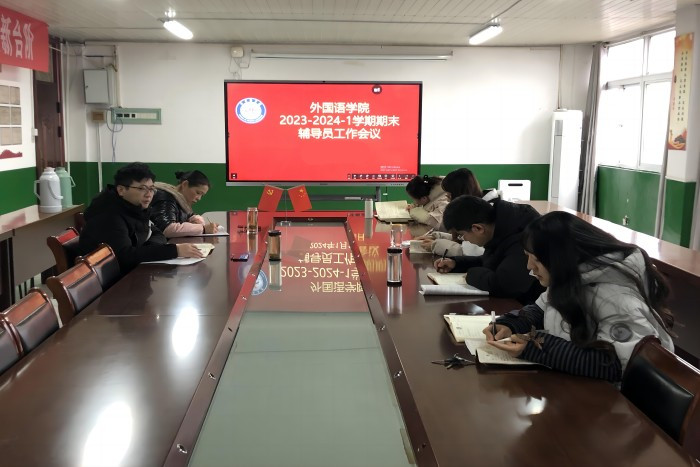 为全面总结2023年的学生工作经验,谋划2024年重点工作任务,1月19日上午,外国语学院在学院会议室召开期末辅导员工作会议。学院党委书记蔡为青以及全体辅导员参加会议,会议由党委副书记张海亮主持。
