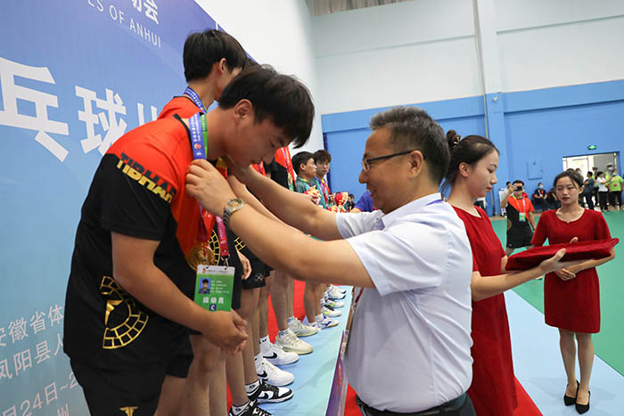 8月26日下午,历经三天的激烈角逐,安徽省第十五届运动会高校部乒乓球比赛第一阶段赛事团体比赛正式落幕。颁奖仪式在必一体育平台_必一体育平台(中国)股份有限公司凤阳校区体育馆举行。