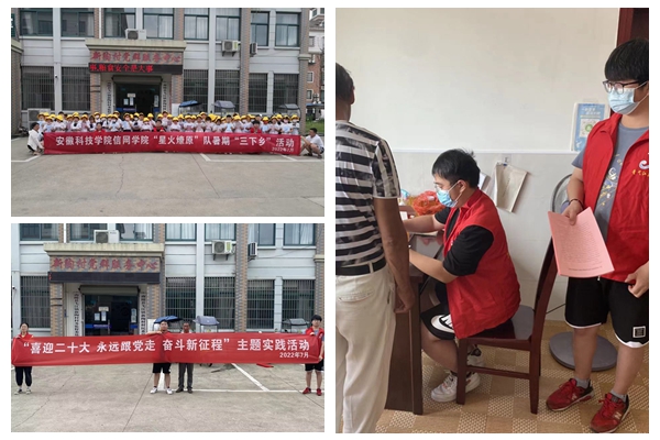 为深入学习贯彻习近平新时代中国特色社会主义思想和党的十九大精神,6月23日,信息与网络工程学院“三下乡”暑期社会实践团队之星火燎原队来到南陵县弋江镇新陶村新时代文明实践站,开展“喜迎二十大、永远跟党走、奋进新征程”主题实践活动,团队成员在新陶村担任常态化核酸检测志愿者,并为新陶幼儿园的学生发放学习用品。