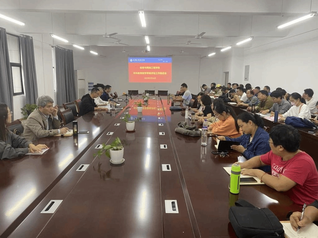 9月26日下午,信息与网络工程学院在龙湖校区尚行楼B418会议室召开教育教学审核评估工作推进会,学院党政领导及全体教职工参与会议。会议由院长余宏杰主持。