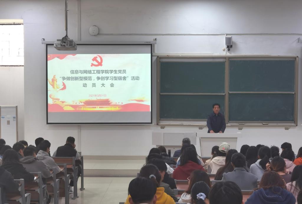 为贯彻落实习近平总书记在党史学习教育动员大会上的重要讲话精神,进一步加强学生党员教育,提高学生党员的创新素质和学习能力,发挥党员模范带头作用。3月31日下午,信息与网络工程学院于致知楼A111召开学生党员“争做创新型模范,争创学习型宿舍”(简称“双争”)活动动员大会。学院党委书记王振其、正处级组织员周向群、党委副书记韦乃学、各学生党支部书记及学生党员、入党积极分子参加此次动员大会,会议由王振其主持。