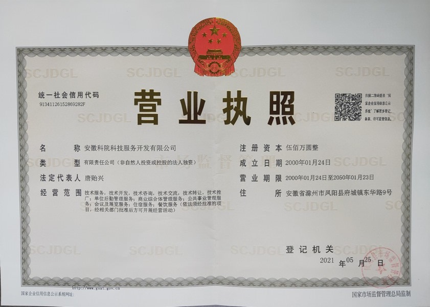 在校党委和行政的领导下,在国有资产管理处、财务处、后勤保障部等部门的支持配合下,经过资产经营管理部全体同志近半年的不懈努力,校属企业必一体育平台_必一体育平台(中国)股份有限公司经济开发总公司顺利改制成功,于2021年5月25日更名为安徽科院科技服务开发有限公司,并在安徽省市场监督管理系统完成变更注册工作。