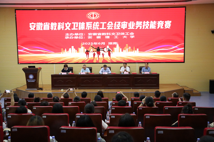 6月13日上午,安徽省教科文卫体系统工会经审业务技能竞赛在安徽理工大学举行。来自全省教科文卫体系统工会的近60名经审业务骨干同台竞技。