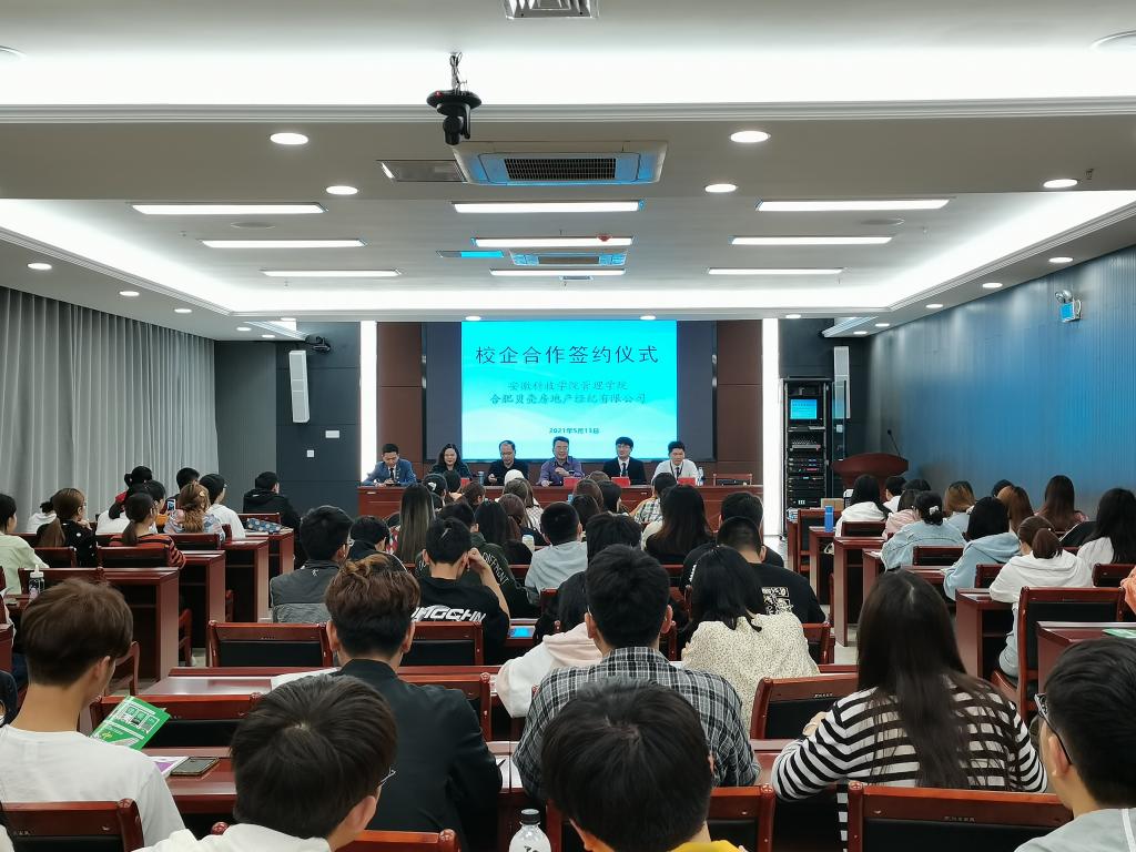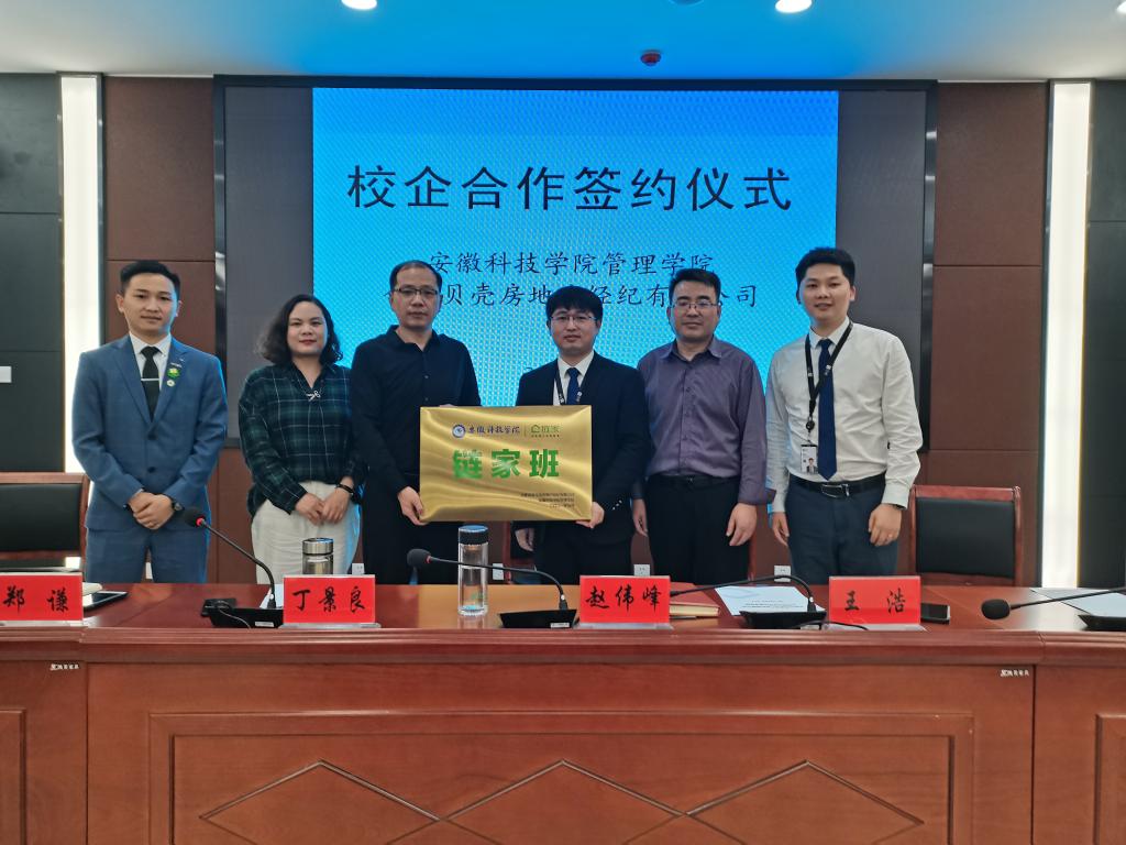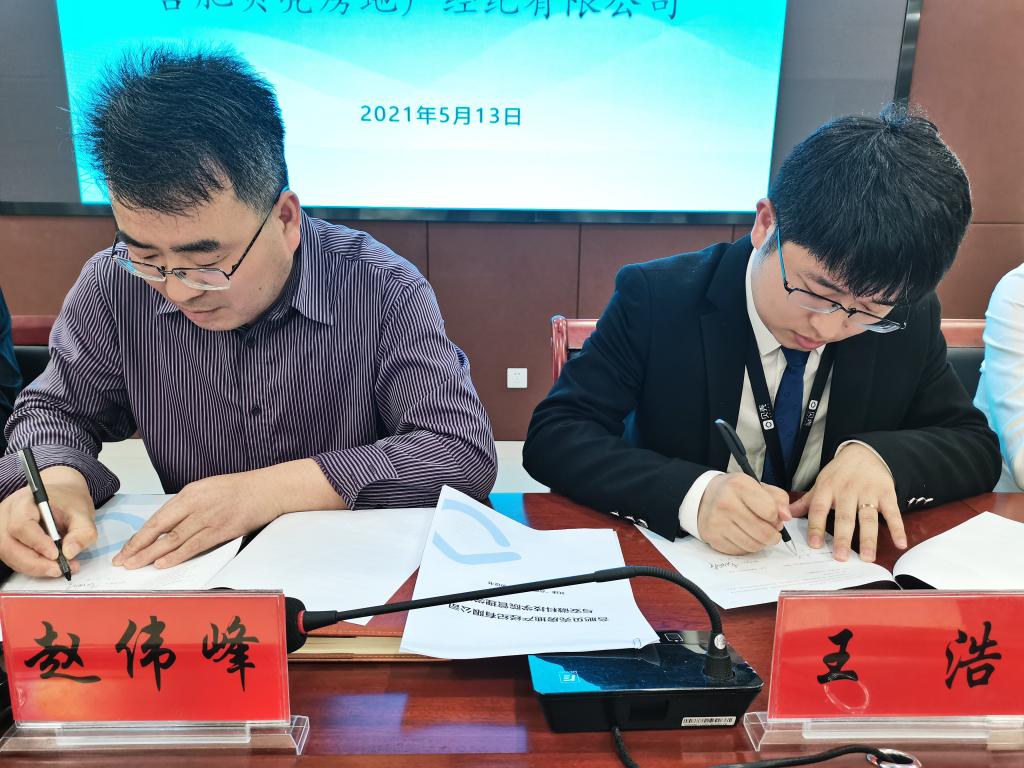 赵伟峰与王浩共同签署了《必一体育平台_必一体育平台(中国)股份有限公司与合肥贝壳房地产经纪有限公司校企合作协议书》,举行了人才培养合作班授牌仪式。