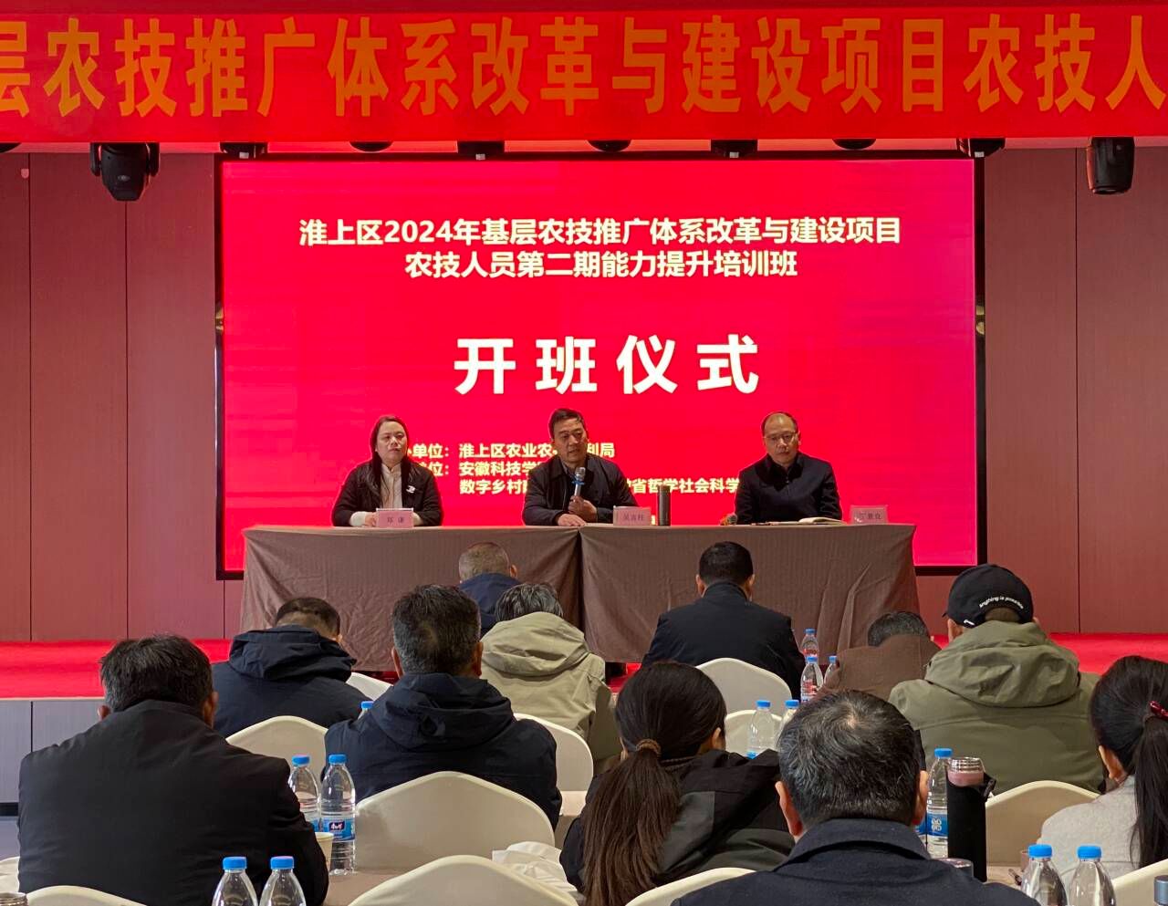 为全面推进乡村振兴,深化淮上区基层农技推广体系改革,2024年11月26日,淮上区基层农技人员第二期能力提升培训班在蚌埠市淮上区举办开班仪式。此次培训由淮上区农业农村水利局主办,必一体育平台_必一体育平台(中国)股份有限公司管理学院、数字乡村建设与安徽省哲学社会科学重点实验室联合承办,淮上区农业综合服务站站长吴言柱,管理学院党委书记丁景良,副院长郑谦出席开班仪式,仪式由丁景良主持。