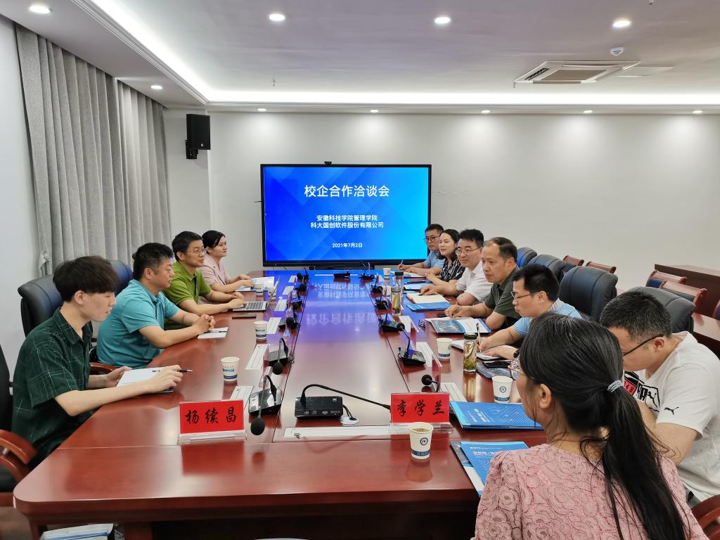 7月2日下午,管理学院在西附楼317会议室与科大国创软件股份有限公司举行了校企合作洽谈交流会。科大国创软件股份有限公司党委书记、监事会主席、安徽科大国创慧联运科技有限公司战略运营总监陈方友,科大国创软件股份有限公司党委副书记陈争勇,安徽科大国创慧联运科技有限公司人力资源部副总经理彭莎莎,安徽科大国创慧联运科技有限公司人力资源部人事专员陈兰菊出席了会议,管理学院党政领导及系室主任参加了会议。会议由院党委书记丁景良主持。