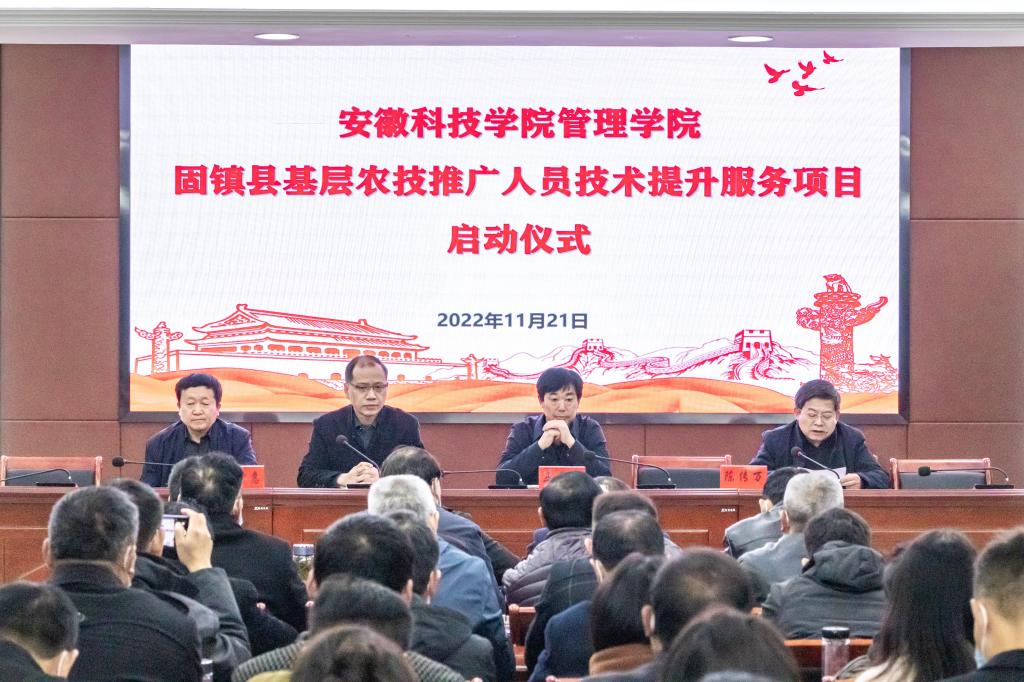 11月21日上午,由管理学院和固镇县农业农村局联合开展的农业技术服务提升项目启动仪式在西附楼111会议室正式举行。固镇县农业农村局副局长马开响、一级主任科员杨树惠,管理学院党委书记丁景良、院长陈传万、副院长张国宝出席了启动仪式,仪式由丁景良主持。