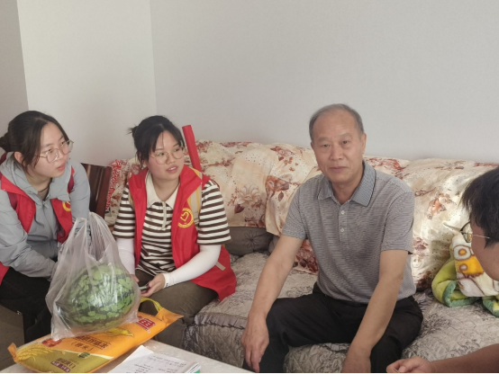第二站,实践团队来到龙子湖区龙湖春天社区,慰问退休老党员。团队四人在社区工作人员的带领下依次拜访了两位老人。志愿者们首先来到了党龄将近四十年的一位老党员家。一进门,老党员就热情地向同学们讲述了自己当年入党的故事,回顾起为党和人民奋斗的光辉岁月,声音激昂,神采飞扬大家也听的入迷。深切感到,没有广大老同志的长期英勇奋斗,就没有今天党和人民事业蓬勃发展的大好局面。老同志不愧是人民共和国的奠基者、社会主义事业的建设者、改革开放和社会主义现代化建设的开拓者,他们的卓越功勋,党和人民永远不会忘记。