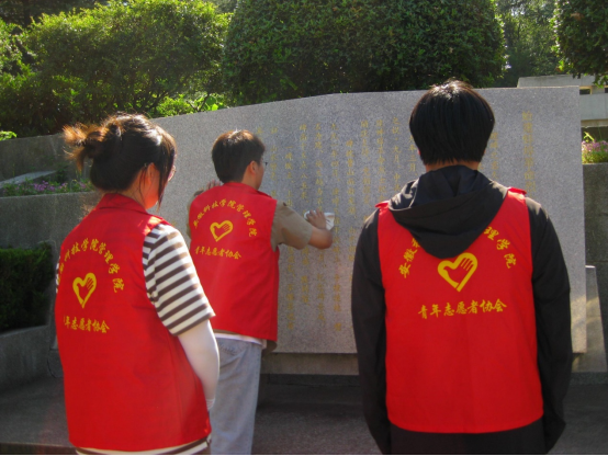 默哀后,团队成员们又拿出携带的抹布仔细清理纪念碑前的碑文。这碑文记载的,是英雄的伟大,是先烈的无畏。虽然他们已经离去,但他们不怕困难、不畏艰险、英勇献身的精神却早已深深的融入我们的的血脉。