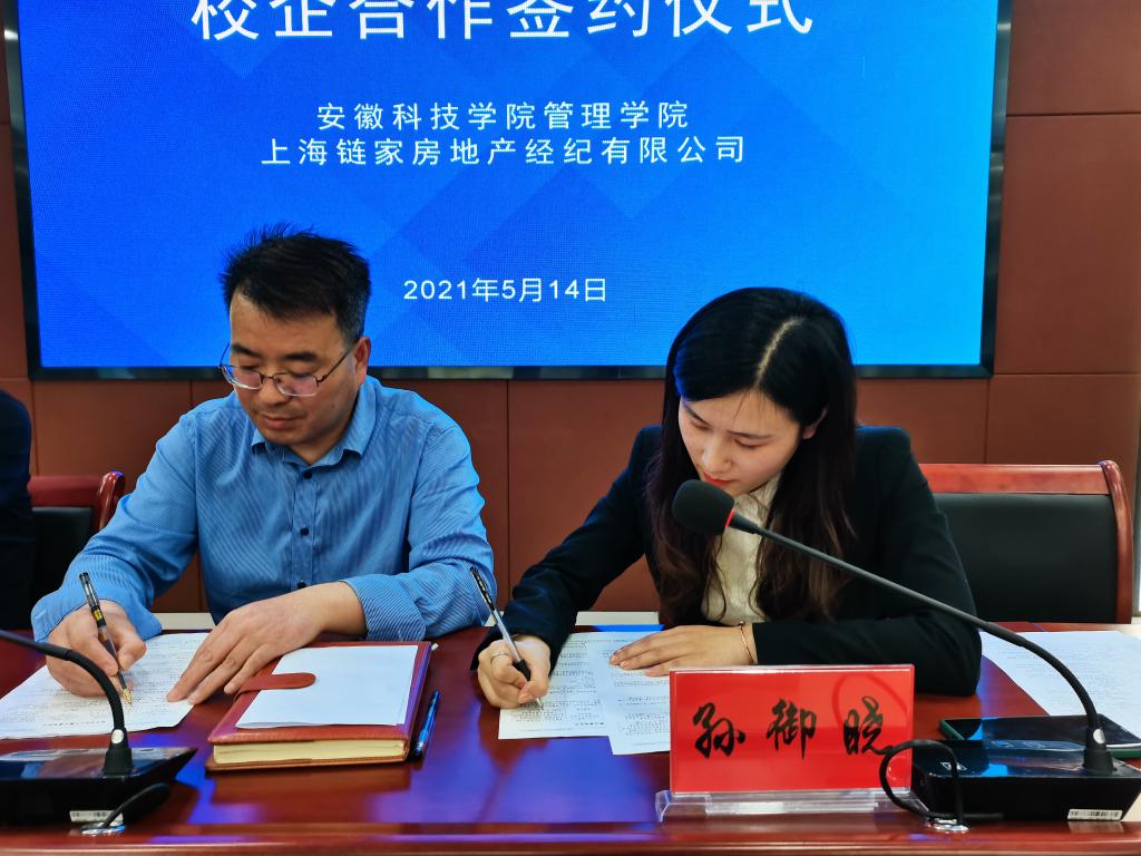 赵伟峰与孙御晓共同签署了《必一体育平台_必一体育平台(中国)股份有限公司与上海链家房地产经纪有限公司校企合作协议书》。