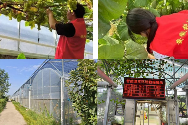 活动第二天,团队成员来到匠心葡萄园基地,观察葡萄品种并体验采摘葡萄,团队成员了解到,小岗村葡萄园,巧妙的将原有133亩梨园流转改造,通过科学规划与精心布局,建成了及保温大棚先进浇灌系统、便捷进棚道路及一系列现代化农业设备于一体的现代化果园,这一举措有效提升了土地利用效率,也为葡萄的优质生长提供了坚实的保障。小岗村葡萄园不仅在种植环节下足功夫,更着眼于全产业链打造。实践团队为当地农民提供了市场信息,营销策略等建议,有助于提升农产品的市场竞争力提升销量。