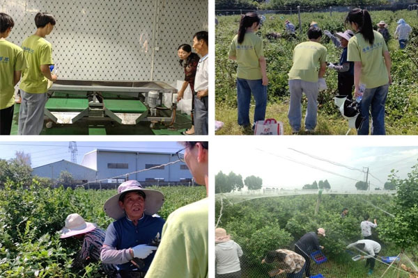 次日,调研团队前往怀宁县裕丰生态农业蓝莓基地参观,了解到蓝莓的采收过程以及对蓝莓的后续养护工作。调研团队通过与基地负责人、种植户和采摘工人深入交流,调研团队了解到,在蓝莓采摘过程中,蓝莓产业园建立了严密的质量控制系统,在蓝莓的采收过程中多为人工采摘,在采摘高峰期,产业园出现劳动力短缺的现象,蓝莓果实质量参差不齐,蓝莓的精加工处理也未得到充分处理;在蓝莓后续养护工作中,蓝莓产业园员工通过人工修枝、化学防治害虫等方式保护蓝莓树,并且建立了灌溉系统,防止蓝莓树水分不足。