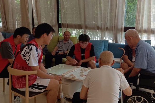 在负责人带领下,团队成员来到活动中心,与老人们面对面亲切交流,聆听老人年轻时的经历,交流中团队成员了解到过去的生活条件与现在的巨大变化、了解到退伍老兵的光荣事迹,在与老人们亲切交流后,老人们主动邀请团队成员一起玩起了象棋和扑克牌,新老两代人其乐融融。团队成员未老人们还送上一项特别的文化活动—非遗漆扇的制作,团队成员耐心地教授老人们如何选漆、打磨、绘画等各个工艺步骤,大家专注地动作着,时而交流讨论,时而相互鼓励,度过了一个愉快的下午。
