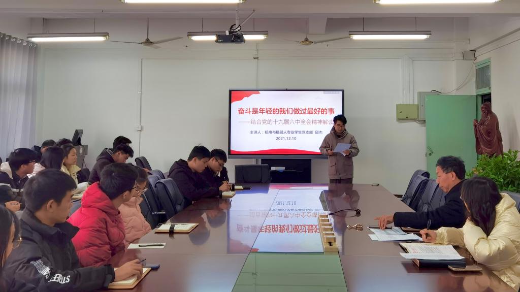 机械工程学院机电与机器人专业学生党支部开展党的十九届六中全会精神专题党课