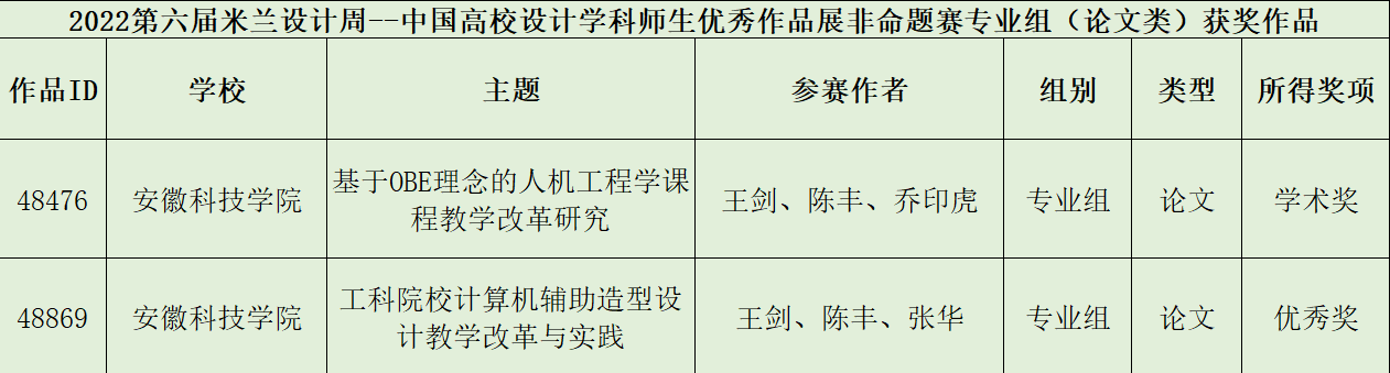 图为第六届米兰设计周高校设计展非命题赛道机械工程学院工业设计专业专业组论文获奖名单