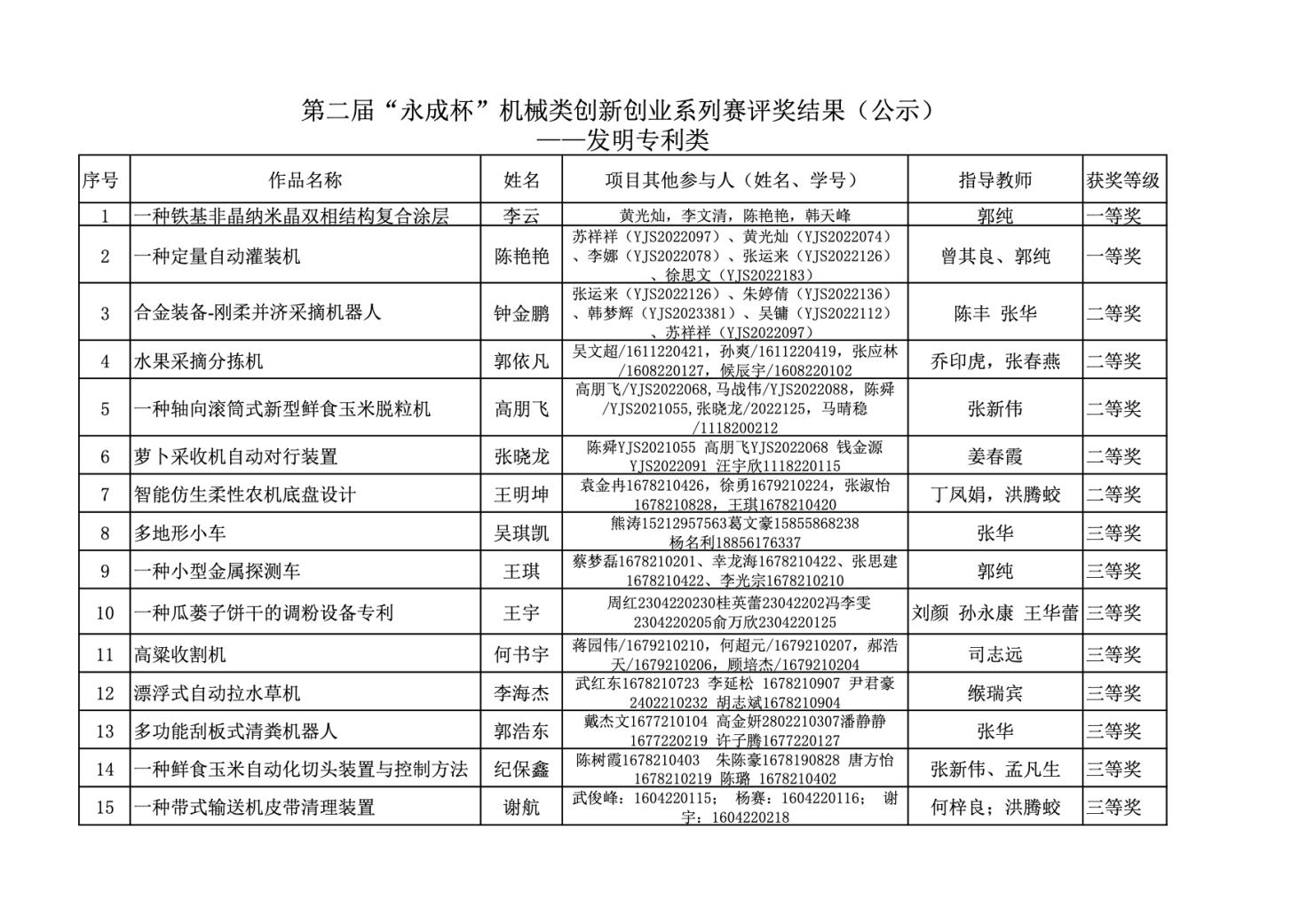 必一体育平台_必一体育平台(中国)股份有限公司第二届“永成杯”机械类创新创业系列赛 获奖情况公示