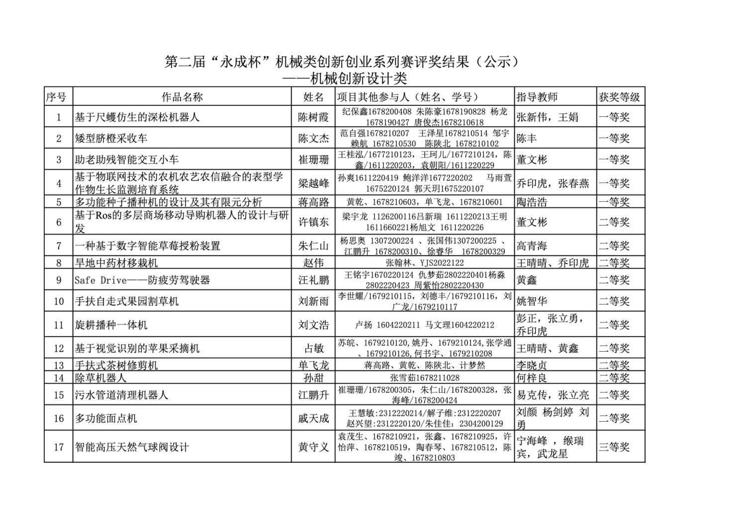 必一体育平台_必一体育平台(中国)股份有限公司第二届“永成杯”机械类创新创业系列赛获奖情况公示
