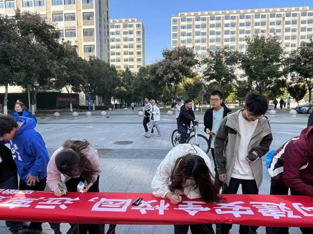 活动现场,路过的师生纷纷驻足主动参与,了解宿舍使用大功率电器的危害,学习在宿舍安全用电的相关知识。参与师生共同在《安全用电承诺书》上签名,承诺将严格遵守学校用电管理规定,自觉维护宿舍用电安全,共同为创建平安校园贡献力量。