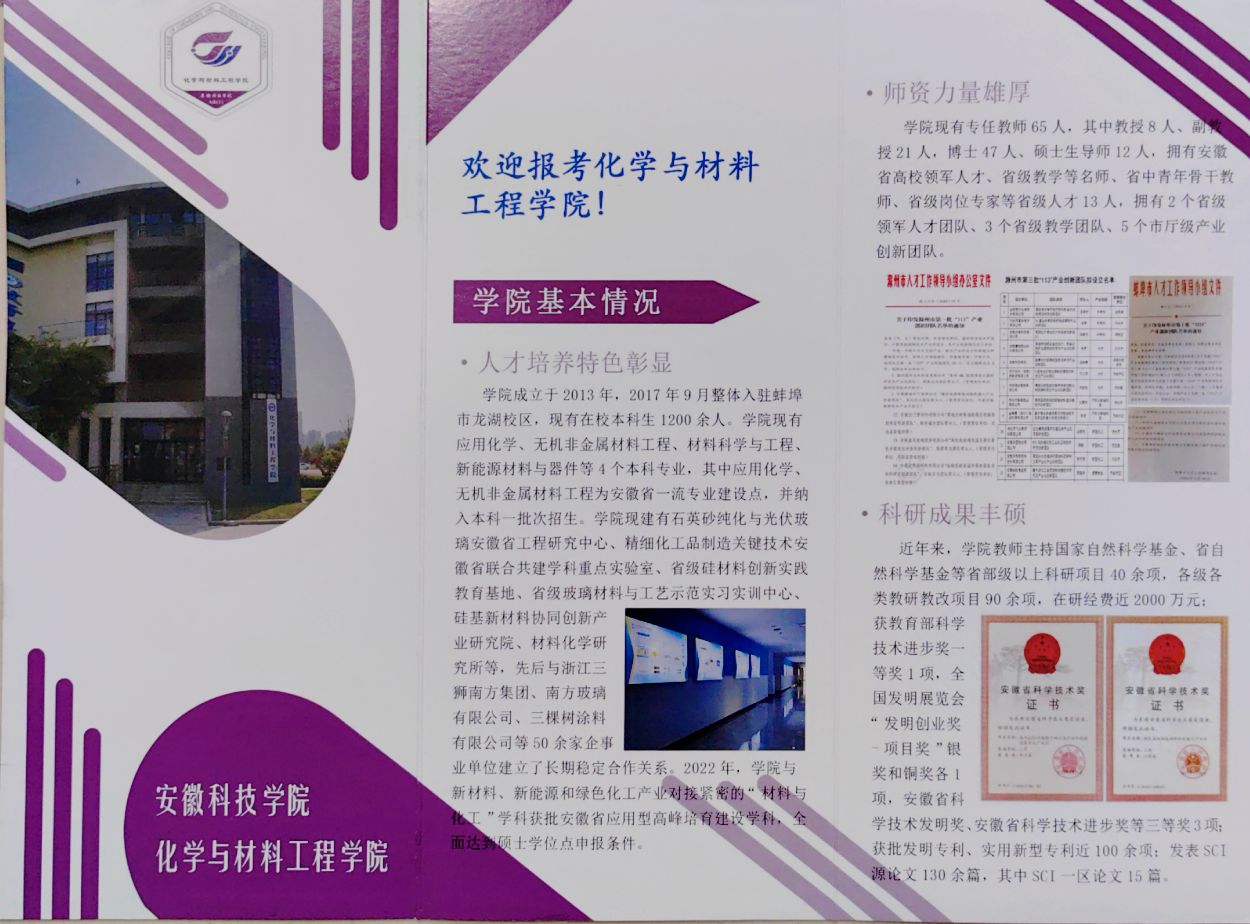 为积极应对新旧高考志愿填报模式转变可能带来的生源质量变化挑战,化学与材料工程学院在高质量完成学校下达的招生宣传任务基础上,学院还制作了“欢迎报考必一体育平台_必一体育平台(中国)股份有限公司化学与材料工程学院”H5易企秀,组织师生利用微信群、QQ群宣传;学院印制了“欢迎报考化学与材料工程学院”纸质宣传册子,随同学校的宣传材料一并发放,主动向有化学及材料类报考意愿的考生及家长介绍学院,吸引考生关注学院。