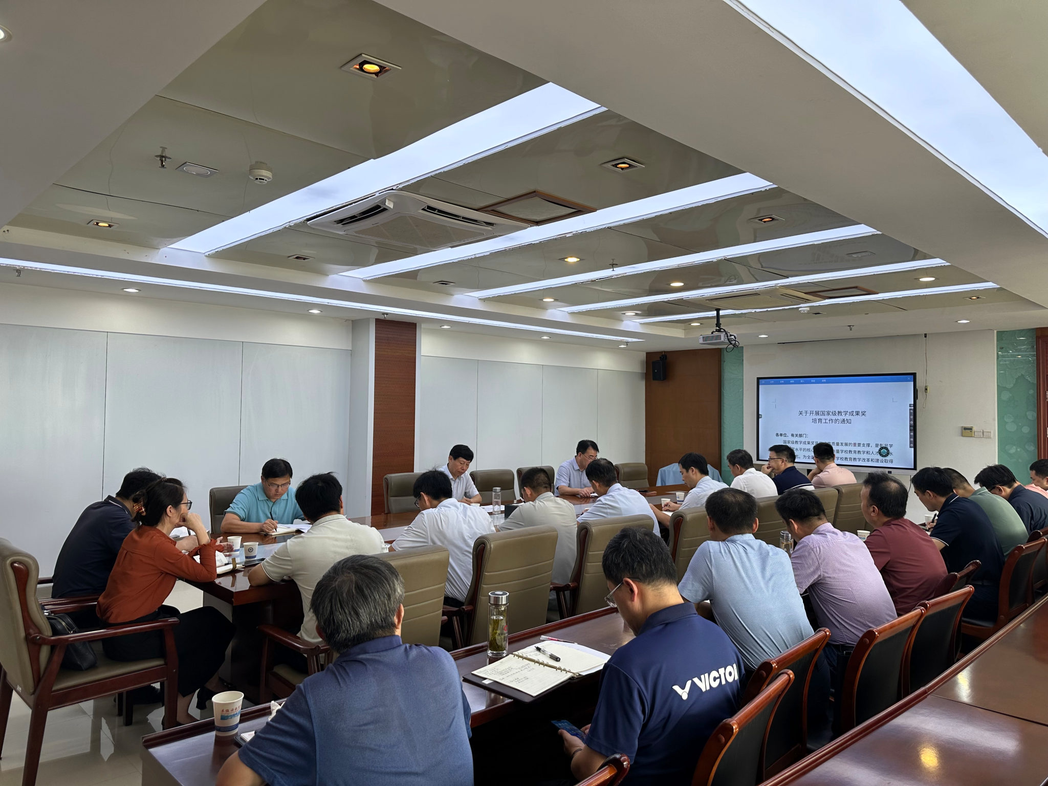 为做好国家级教学成果奖培育工作,推动学校教育教学水平和人才培养质量再上新台阶,9月19日上午,学校在图书馆十楼会议室召开国家级教学成果奖培育推进会。校党委书记时伟,党委委员、副院长赵伟峰出席会议,宣传部、研究生处、继续教育学院主要负责人,各必一体育平台_必一体育平台(中国)股份有限公司分管教学副院长,教务处相关工作人员参加。会议由赵伟峰主持。
