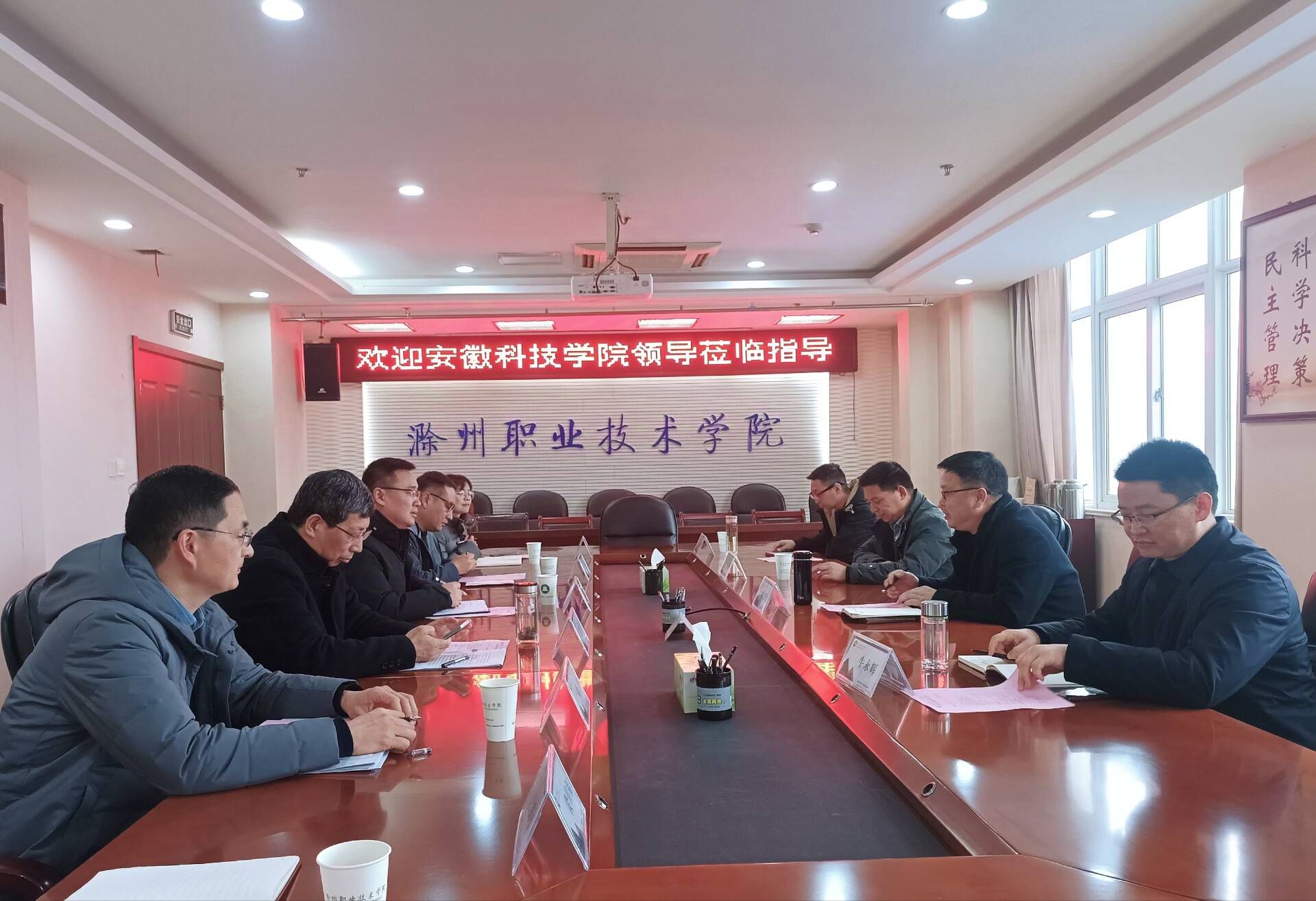 3月5日下午,教务处副处长舒英杰、智能制造学院副院长张华、人文学院副院长牛永辉和食品科学与工程学院副院长翟立公等四人组成的调研团,前往滁州职业技术学院开展调研活动。此行受到了滁州职业技术学院教务处处长唐义武及电气工程学院院长张信群、基础教学部主刘杰、食品与环境工程学院副院长孟飞、实验实训中心副主任殷德莉等领导的热情接待。