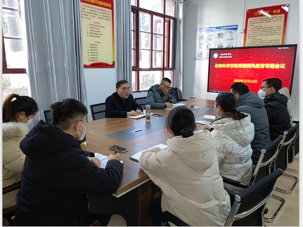 为进一步强化学院师德师风建设工作,12月14日上午,动物科学学院在学院会议室组织新进教师开展师德师风专题教育。学院党委书记姚勇,党委副书记、纪委书记汤帅出席会议,新进教师参加会议。会议由姚勇主持。