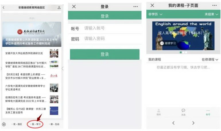 直接搜索“安徽继续网络园区”或扫码图5所示二维码关注园区公众号。